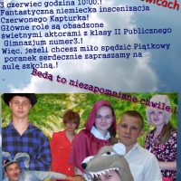 Były to dla mnie, jako nauczyciela/koordynatora, fantastyczne 4 miesiące pracy. Oczywiście, nie obyło się bez sytuacji kryzysowych, ale przecież między innymi na tym polega praca zespołowa: są momenty rozwoju, gdzie wszystko idzie naprzód z prędkością strzały, ale są też dni załamania, regresji, kiedy to mamy wrażenie, że nic nam dalej nie wyjdzie. Pojawiają się sytuacje, których nie da się przypisać do żadnych z wcześniej wyuczonych regułek czy też definicji, trzeba działać tu i teraz, aby wybrać najlepszy dla wszystkich wariant. Pomimo, że te cztery miesiące kosztowały mnie sporo dodatkowego wolnego czasu, praca z uczniami sprawiła mi niesamowitą przyjemność. Obserwowanie, jak starają się porozumiewać, jak powoli stają się zgraną grupą, jak zaczynają się konstruktywnie krytykować, jak czasem krzykną – bezcenne, a gdy podglądałam ich próby i słyszałam, jak sobie doradzają, jak się nawzajem poprawiają ? to cieszyłam się, jak dziecko;). Cel został osiągnięty ? uczniowie współdziałają i tworzą coś swojego, moja rola się skończyła, teraz przyszedł ich czas i o to właśnie w tym wszystkim chodzi: o stworzenie uczniom przestrzeni i warunków do działania.