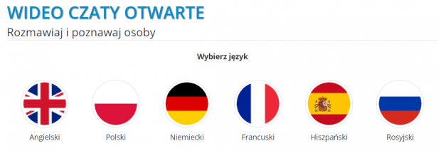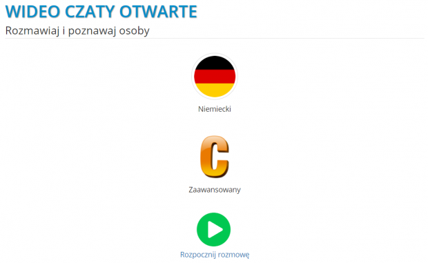 Aby wejść do pokoju otwartego i uczyć się 1 z 6 języków obcych, logujemy się na swoje konto i klikamy przycisk Start pod opcją Wideo czaty otwarte.