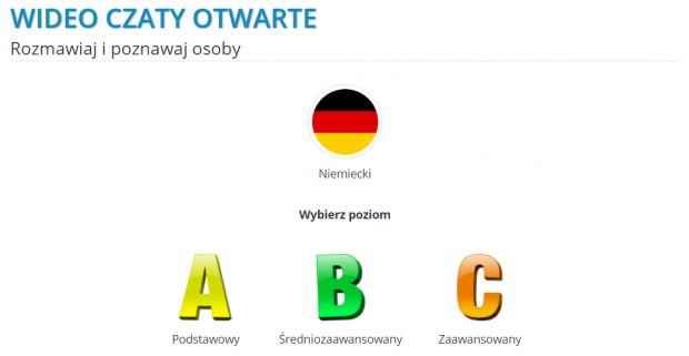 Kolejnym krokiem jest wybór zaawansowania językowego (A – poziom podstawowy, B – poziom średniozaawansowany lub C – poziom zaawansowany).